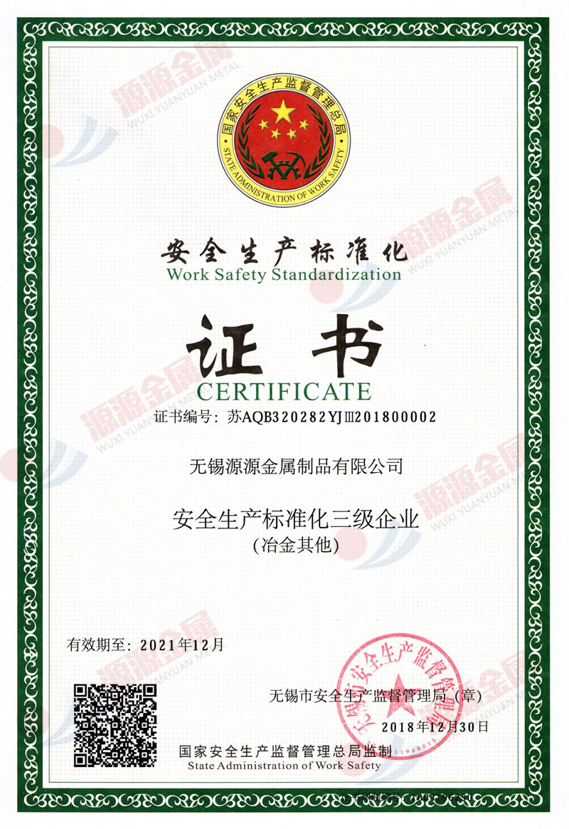 安全生产标准化证书